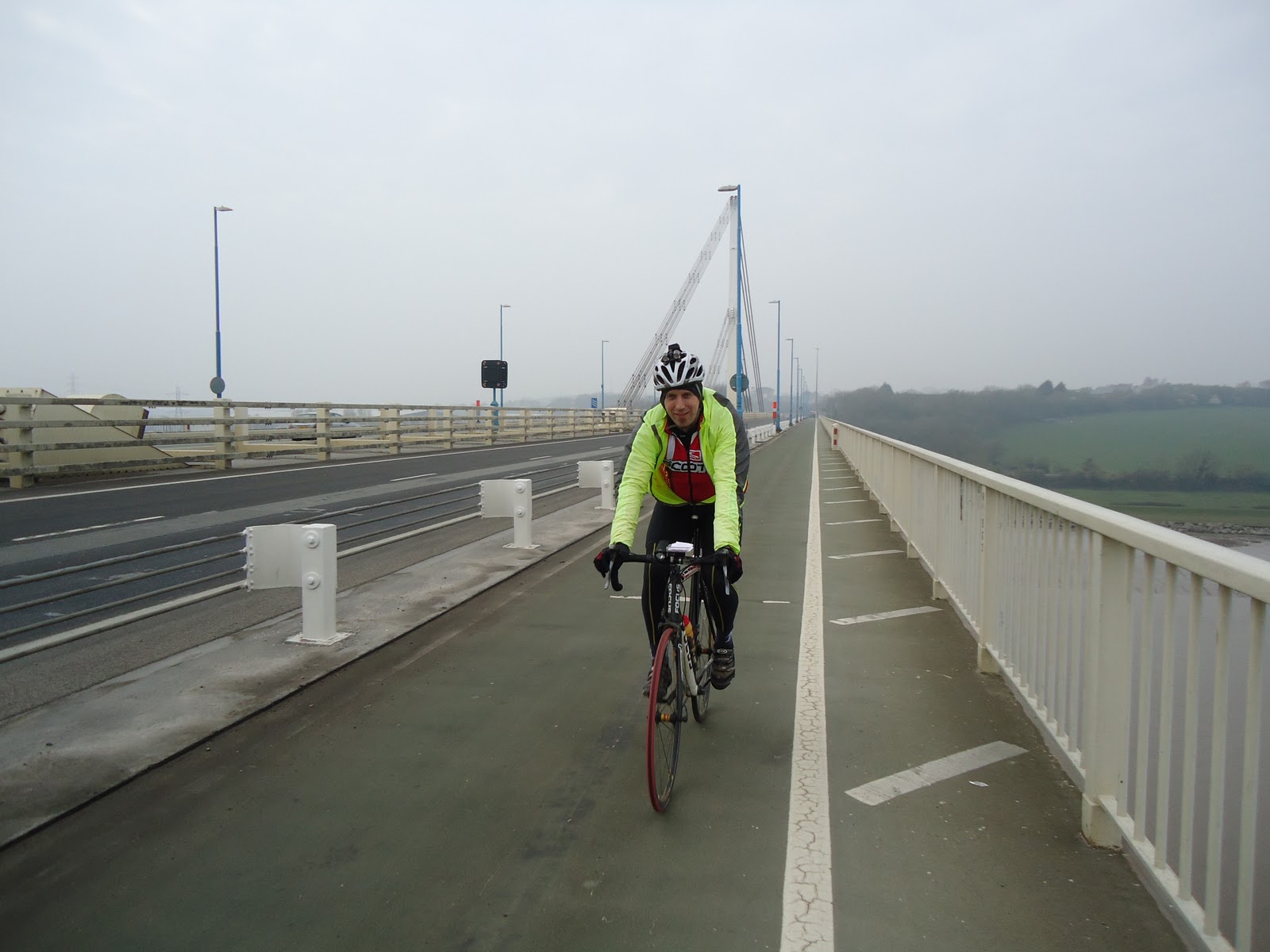 From Newent to Chepstow we encountered more hills. Hilly menace! To make things worse I had gotten something in my eye. Ron plucked the offending object from my eye - still not sure what it was but looked very much like worm poo. Maybe the gunk was evidence of infection - my poor eye had been watering and itchy for miles. Ron said I should put salt in my eye, stating I should trust him as he is 'a first aider' - now where have I heard that before?! Passing through the Forest of Dean was lovely and we saw a wild pig. This wild pig (boar according to Ron) was dead and appeared to be the victim of road kill - Ron said the locals had killed it and would put it between some slabs of bread if we were not passing by. Reached the control and ate junk for our efforts. This junk was chicken pieces, a pasty slice and more of my malt loaf. (Frequently throughout trip we would munch on biscuits or gels etc).